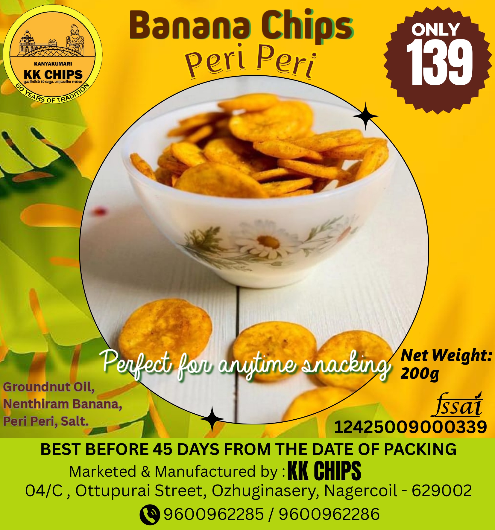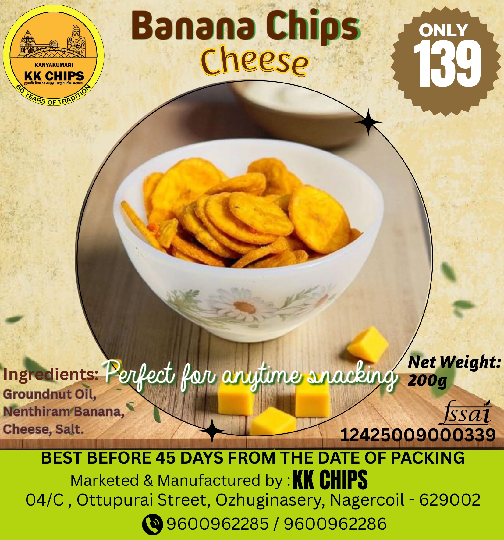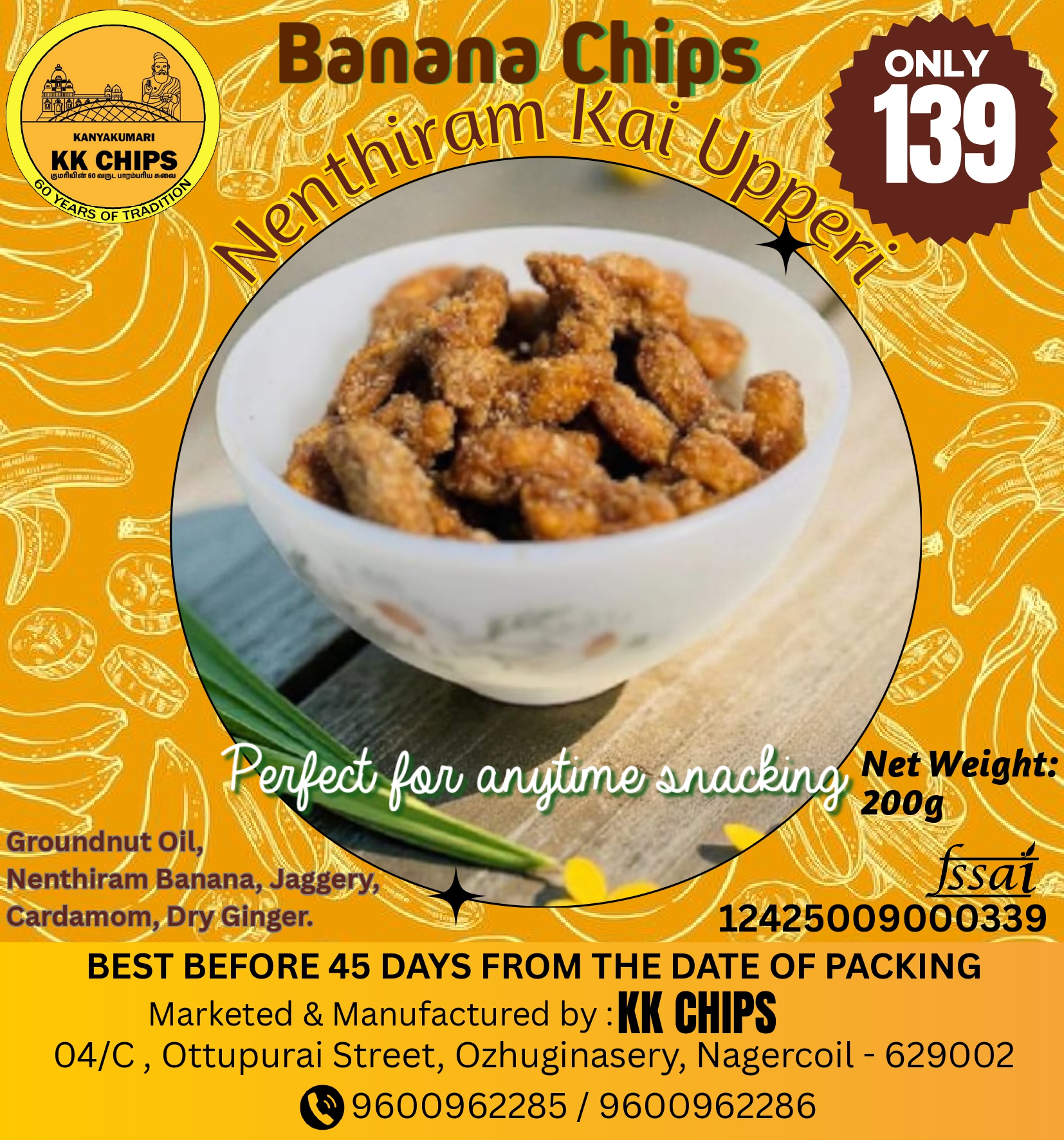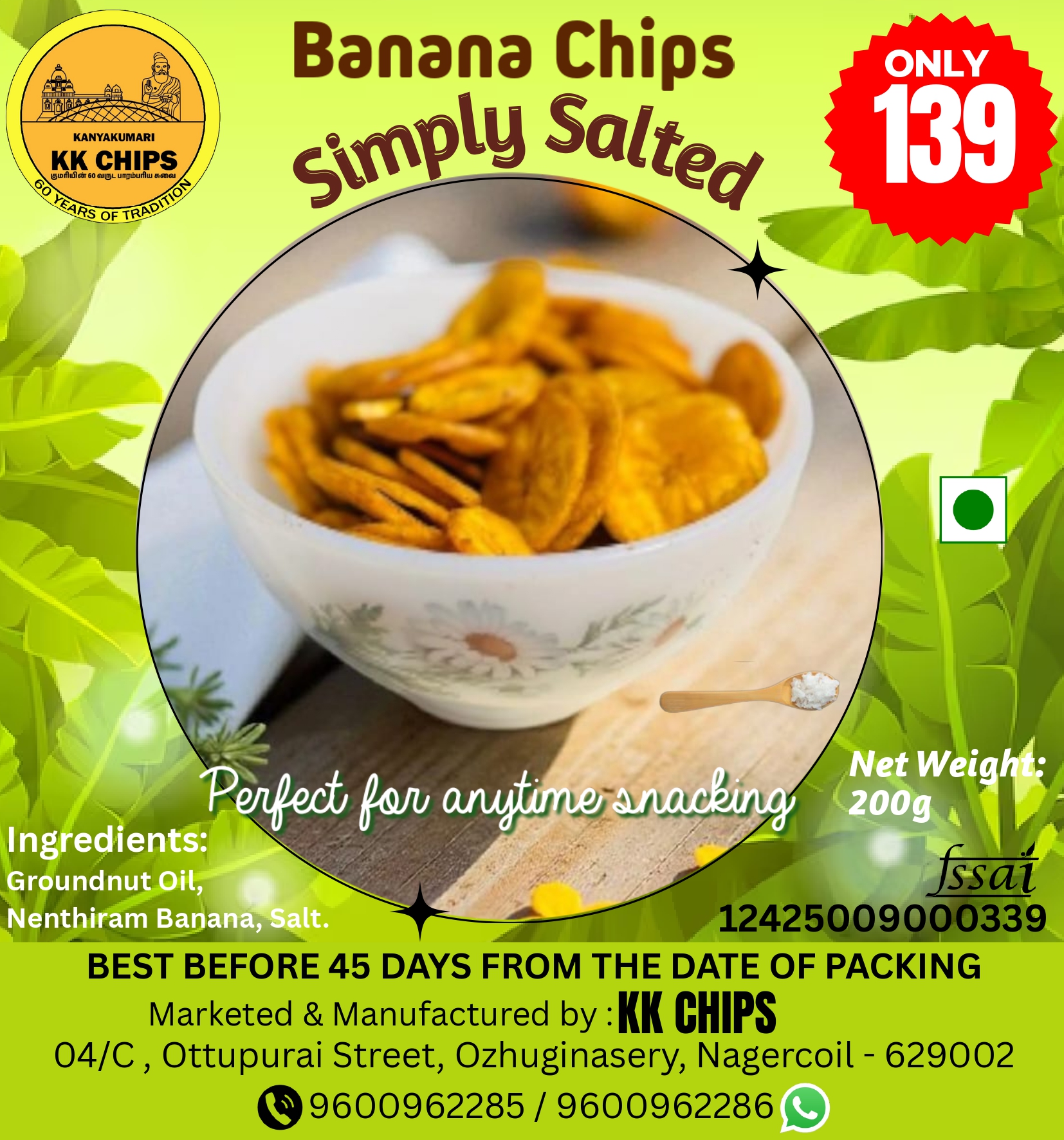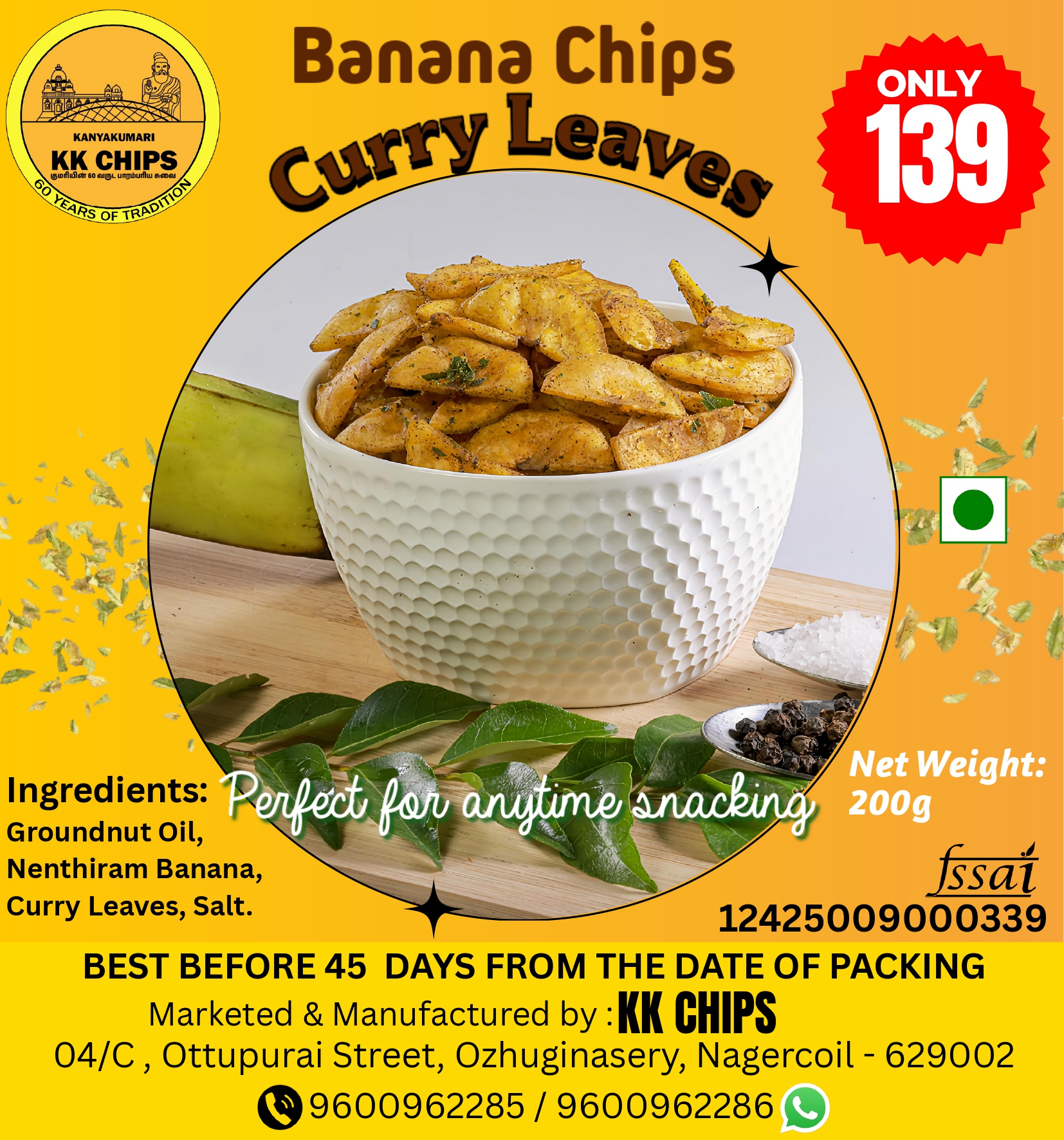 Discover the distinctive flavours that define KK Chips. Each recipe is crafted to bring out the authentic taste of premium Nendran bananas, cooked to a perfect, irresistible crunch.
